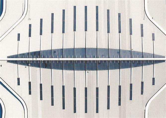 指廊厦门翔安国际机场致力于打造零碳机场,航站楼六条指廊(呈手指状放射延伸的结构)屋面安装总面积达5.6万平方米的分布式光伏发电系统,采用防眩光玻璃降低对飞机起降的干扰,预计年发电量1300万千瓦时。