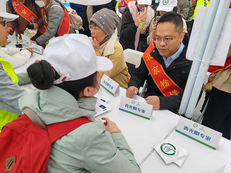 值得一提的是,活动现场还特别设置了青光眼专家义诊环节。在活动区域的醒目位置,来自同仁医院和其他医院的青光眼专家团队早已准备就绪。他们耐心接待每一位榜样,认真解答有关青光眼疾病的各类疑问,并详细叮嘱在日常生活中护眼的注意事项,比如保持良好的作息习惯、避免长时间在暗处用眼等。