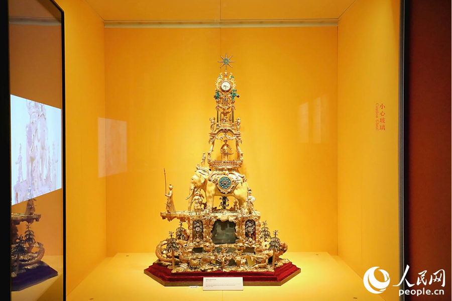 图为铜镀金象驮转花钟,是鼓浪屿故宫文物馆的“镇馆之宝”。人民网记者
