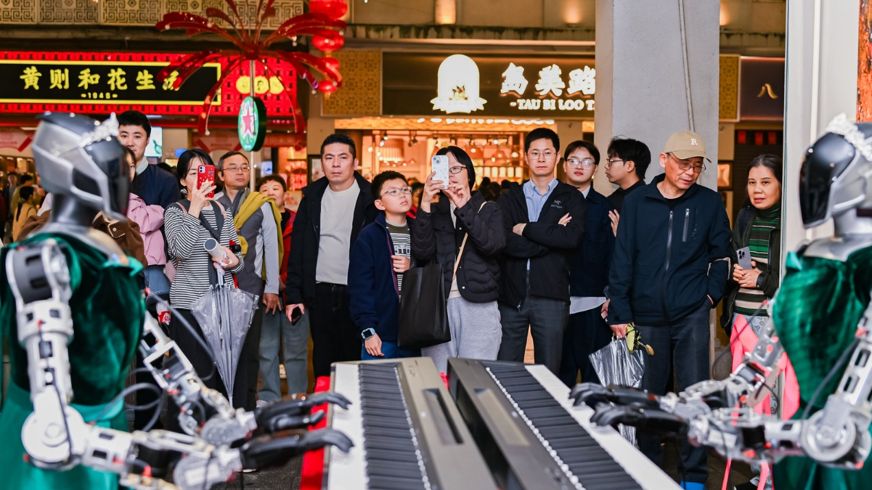 春节的欢腾余音未了,元宵佳节又为中山路披上科技与艺术交织的盛装。在油画坊,智行墨佐机器人与外籍乐手默契配合,钢琴人机联弹《琴韵悠扬》奏响未来之音;小走马路舞台上,厦门市南乐团以典雅南音传唱闽南古韵,让百年非遗与百年老街共鸣;天仙旅社则回荡起歌剧的华美咏叹,琥珀时光乐团中俄籍表演者倾情演绎《饮酒歌》等经典曲目,骑楼之下,中西和鸣。这些活动不仅丰富了“两岸数智非遗年”的节日内涵,更以机器人与国际艺术家的同台、传统南音与西洋歌剧的交相辉映,生动诠释了中山路“国际范与年轻化”的双向融合,让海内外游客在沉浸式体验中感受一条百年老街的创新活力。