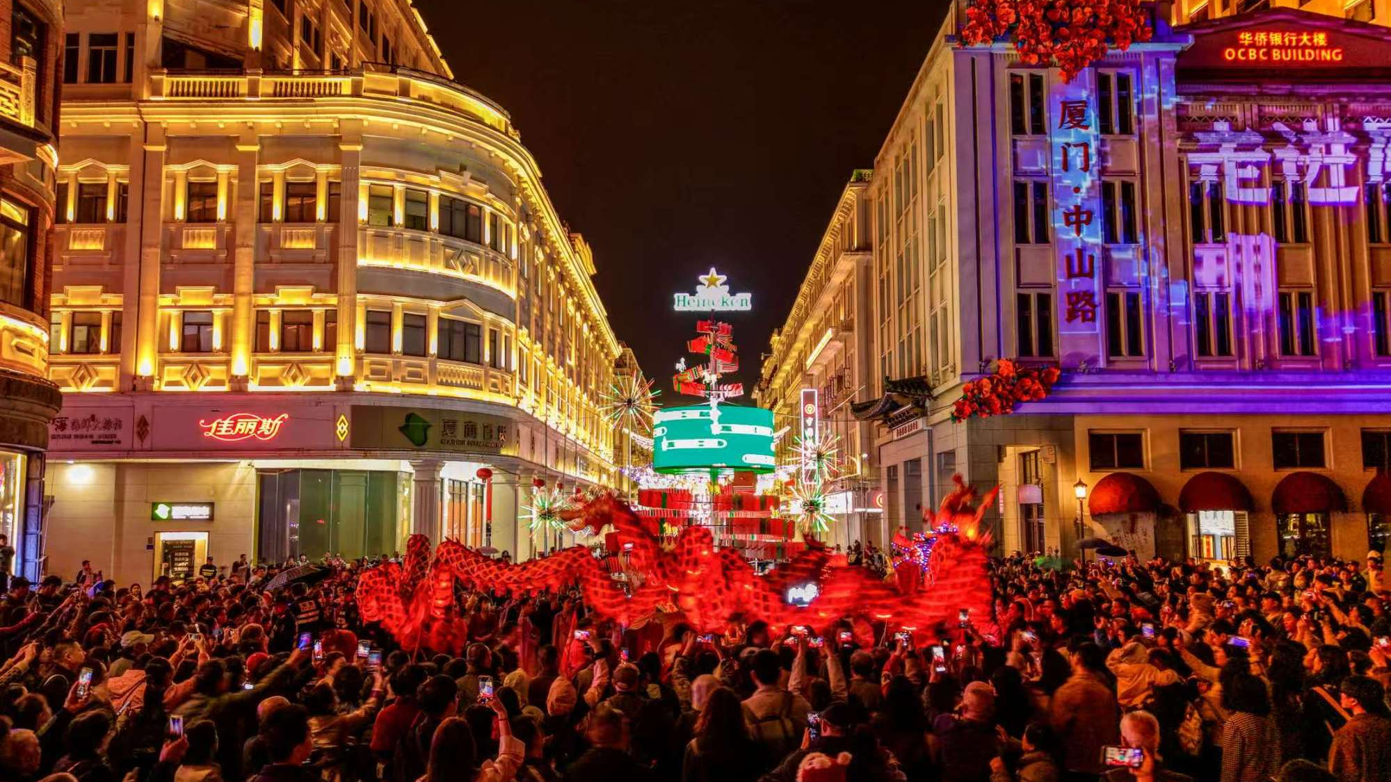 从早期的通商口岸,到如今的两岸文化交流纽带与国际消费集聚区,厦门中山路的进阶史,是厦门城市开放发展的缩影。当科技的光影洒在百年骑楼的廊柱上,人们看到的不仅是节日的烟火气,更是历史文化街区守正创新的生命力。如今,向着“国际级商圈”迈进的厦门中山路,正以闽南味、侨乡韵、科技潮、国际范的独特气质,继续书写着“潮涌不息”的时代华章。
